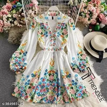 Name : Puff Sleeve Stylist Floral Printed Dresses For Women